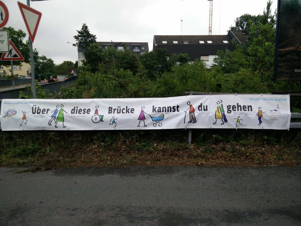 Aufgrund der Geschichte der Entstehung unserer Gemeinde, v.a. aber des Kirchenbaus sind wir sehr im Stadtteil verwurzelt. Dies zeigt sich in der Präsenz bei Veranstaltungen im Stadtteil, aber auch in der Öffnung der Gemeindegebäude und dem Engagement der Mitarbeitenden für Fragen und Belange vor Ort. In den letzten Jahren zeigte sich unser sozial-diakonisches Profil der Gemeinde insbesondere im Engement für Geflüchtete. Kirche und Gemeindehaus werden für Kirchenasyl, Sprachkurse und weitere Veranstaltungen aktiv genutzt. Auf diese Weise heißen wir hier viele ganz unterschiedliche Menschen herzlich willkommen.